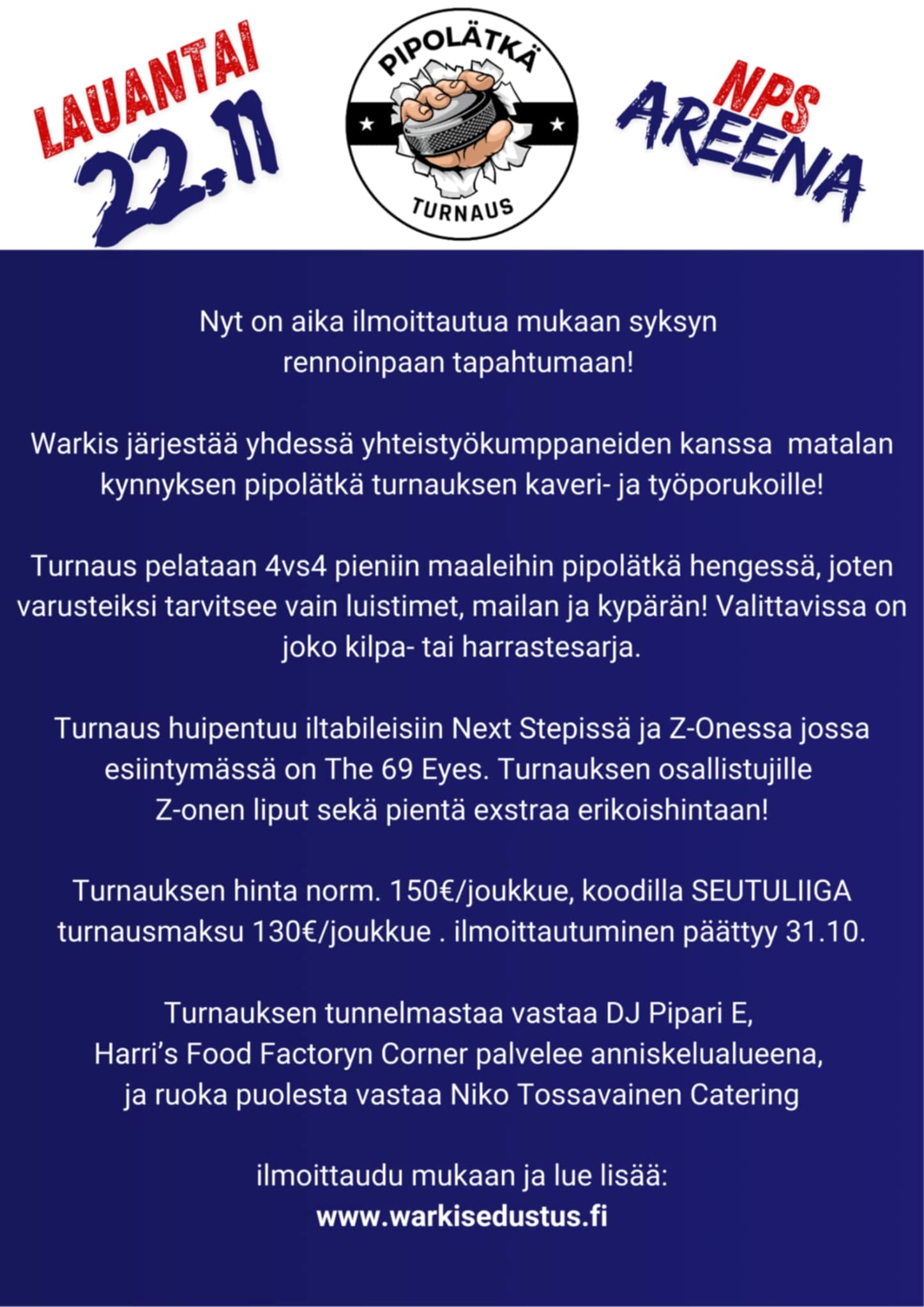 | 2025-10-29 18:00:0029.10.2025 | Tornado vs Roskasakki | 18:00:0018:00 | 1. divisioona | Liikuntatalo, Varkaus |